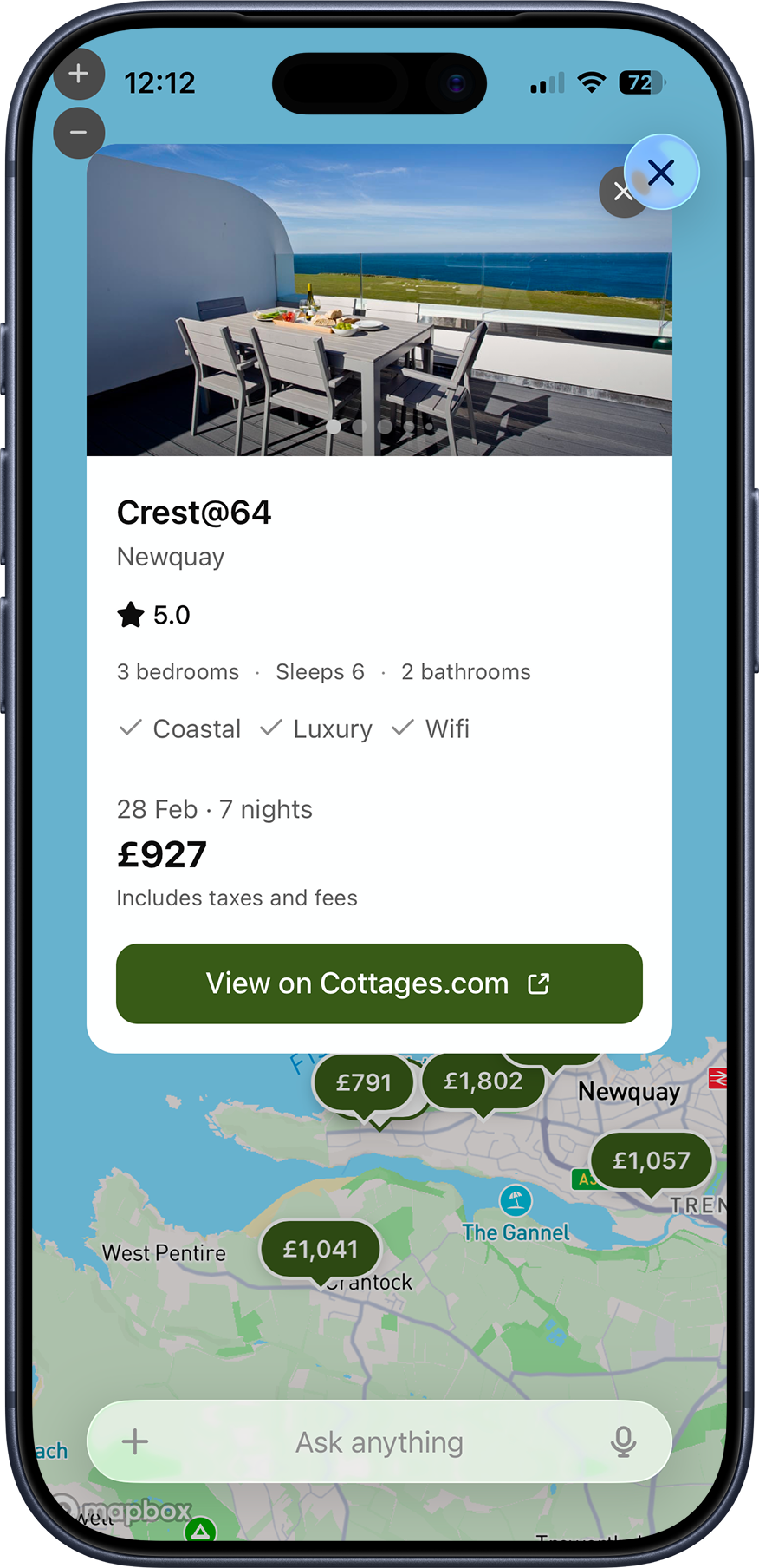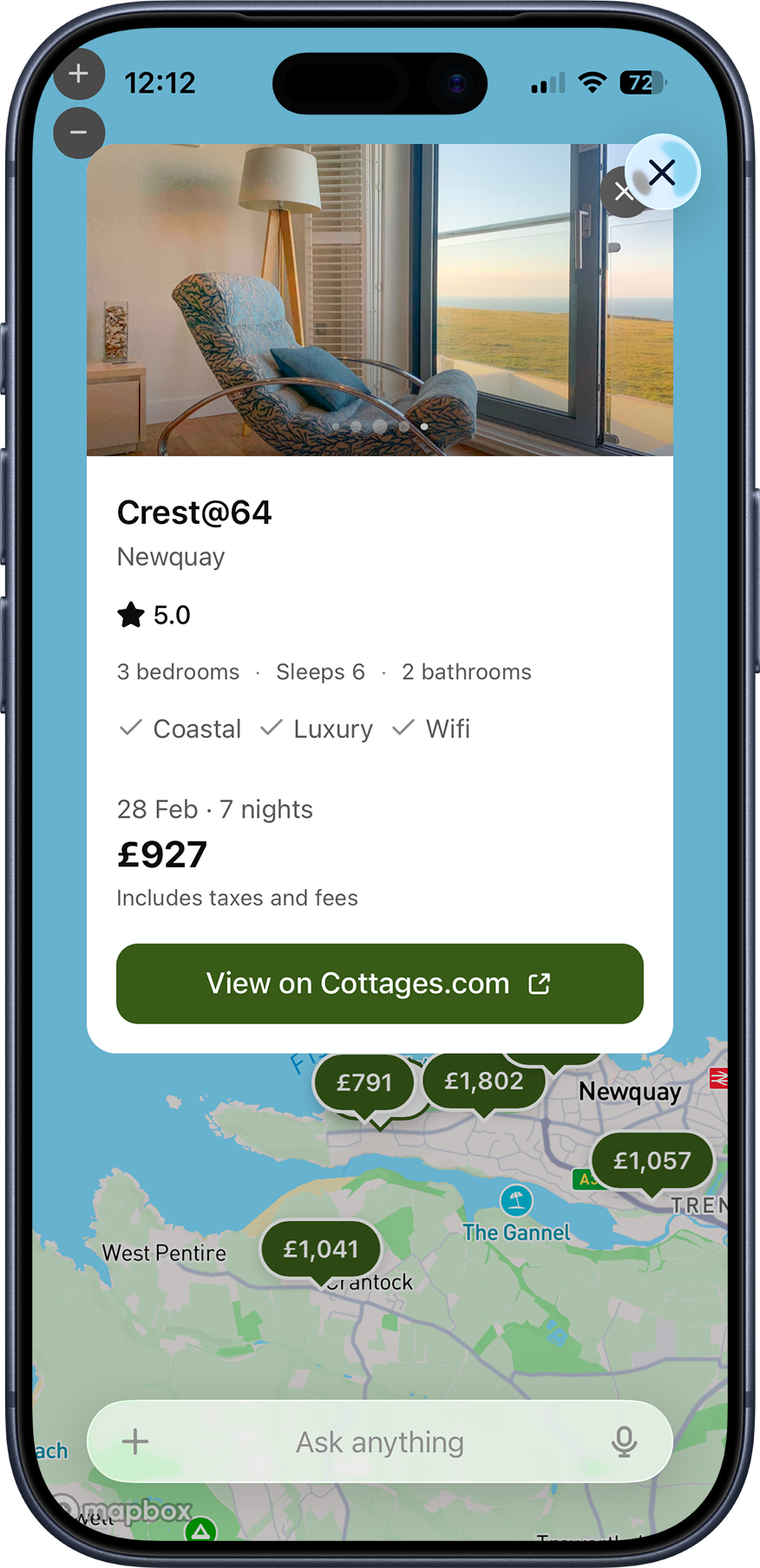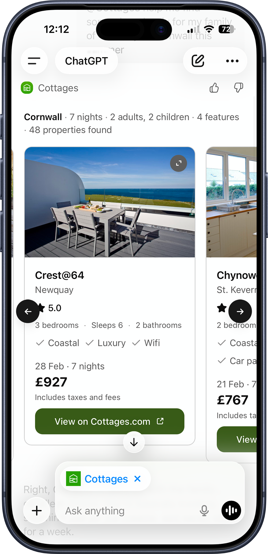 Launching with Cottages.com, one of Awaze’s core UK brands, the app allows travellers to describe their ideal break in conversational language – from a dog-friendly coastal cottage with a hot tub to a countryside retreat near walking routes – and receive tailored results showing live availability and pricing. Once customers have shortlisted properties, they can review full details and complete their booking through Cottages.com.